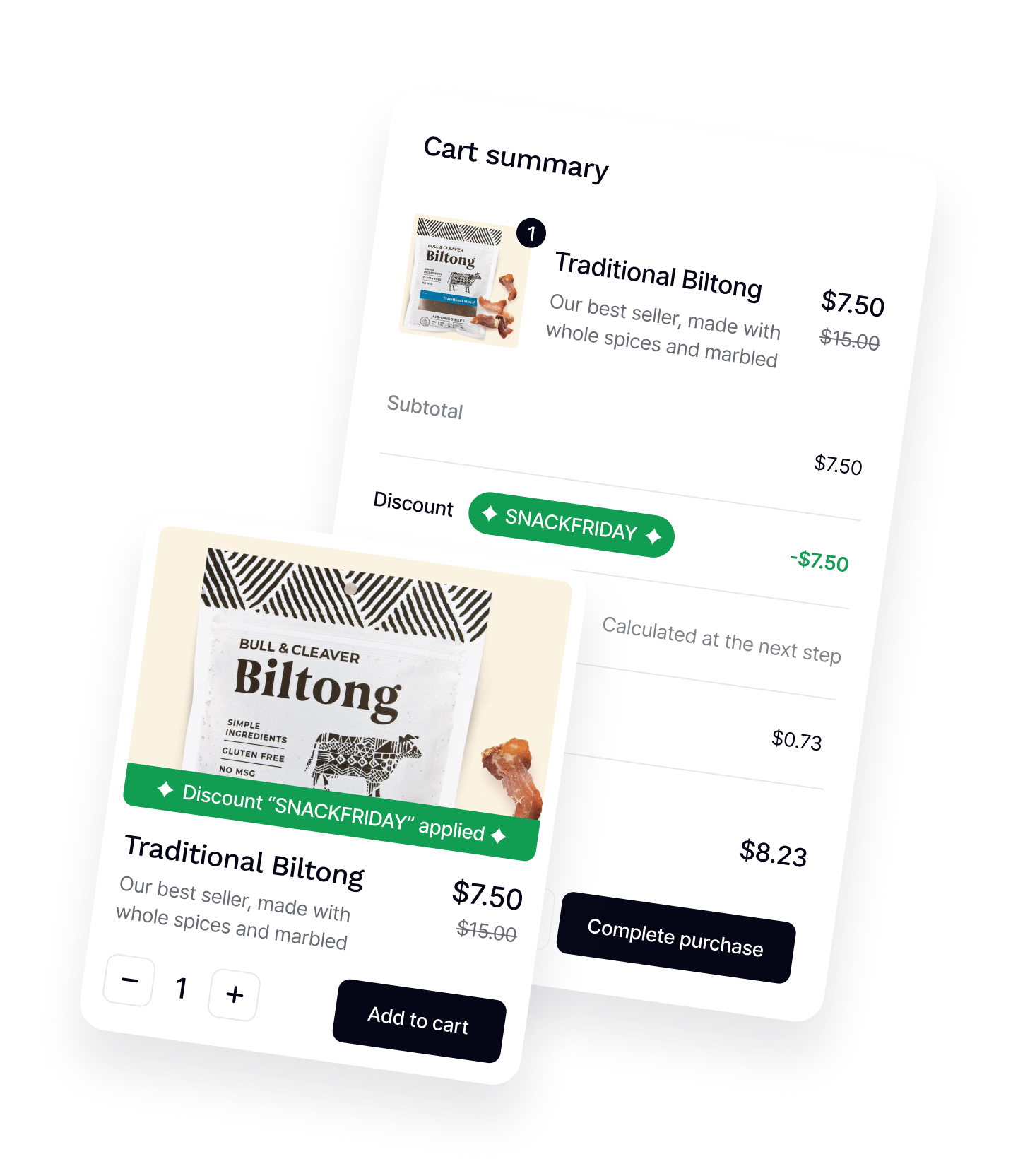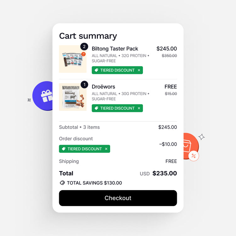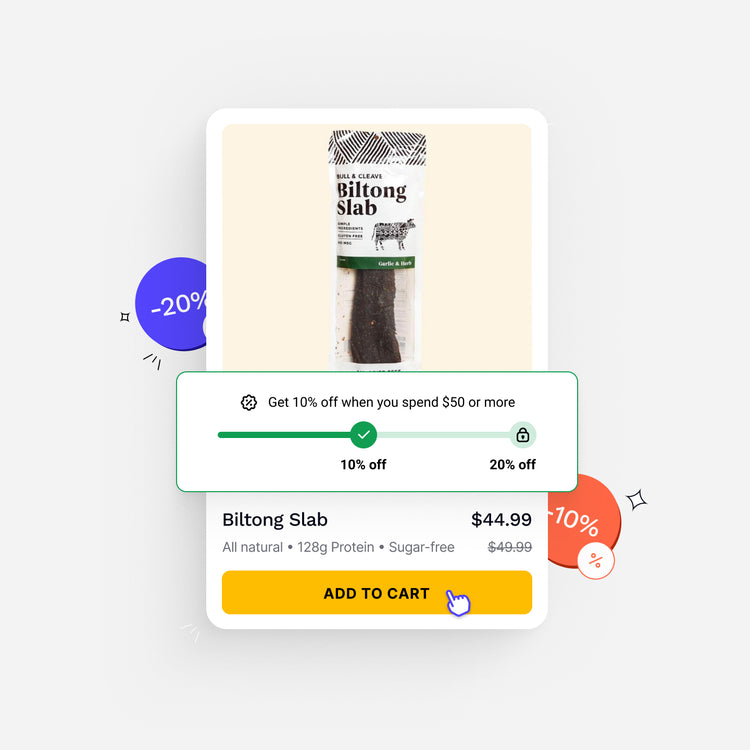 Create BOGO, bundle, and fixed-price discounts with flexible product and quantity rules.