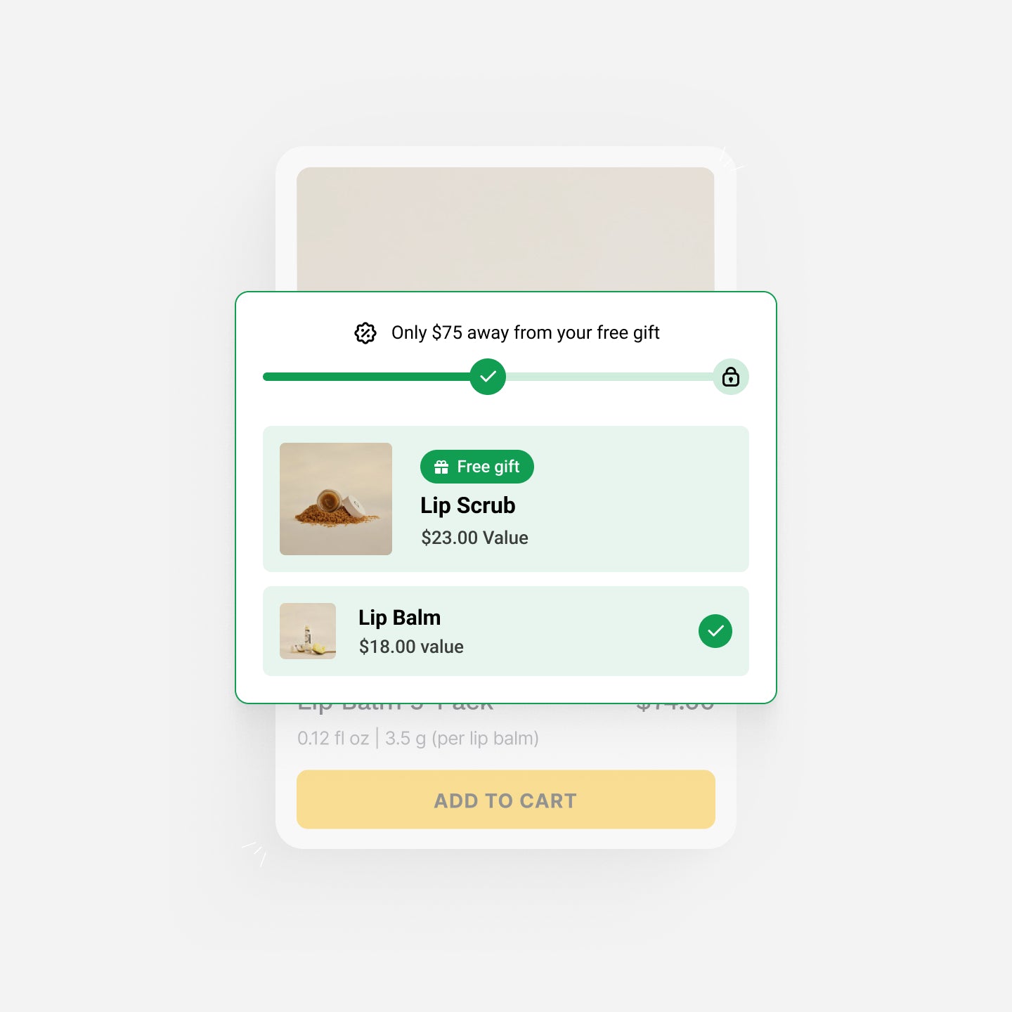 Add multiple selectable gifts with purchase based on cart contents or order total