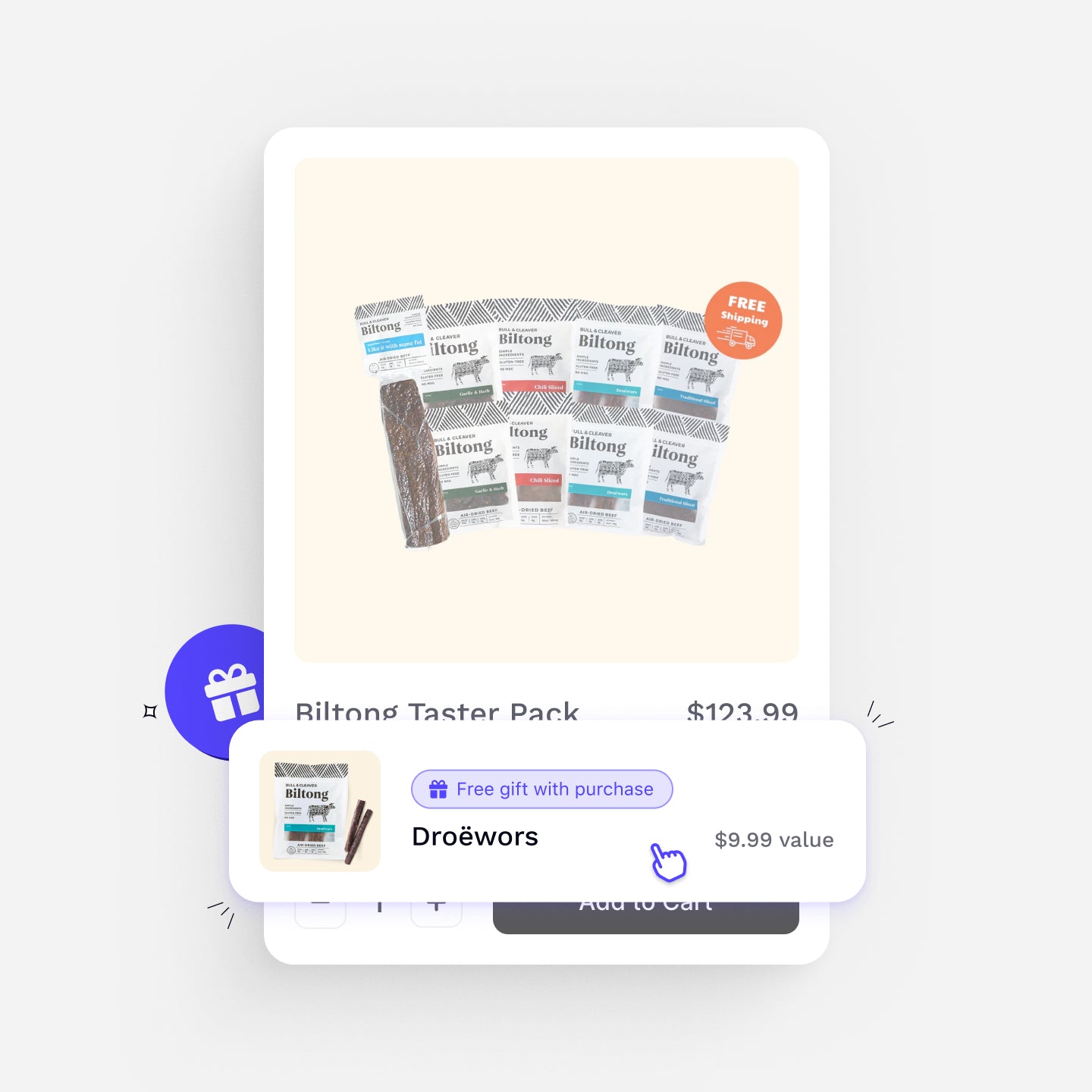 Run tiered discounts, personalized promotions, and seamless gift with purchase inside your Tapcart app.