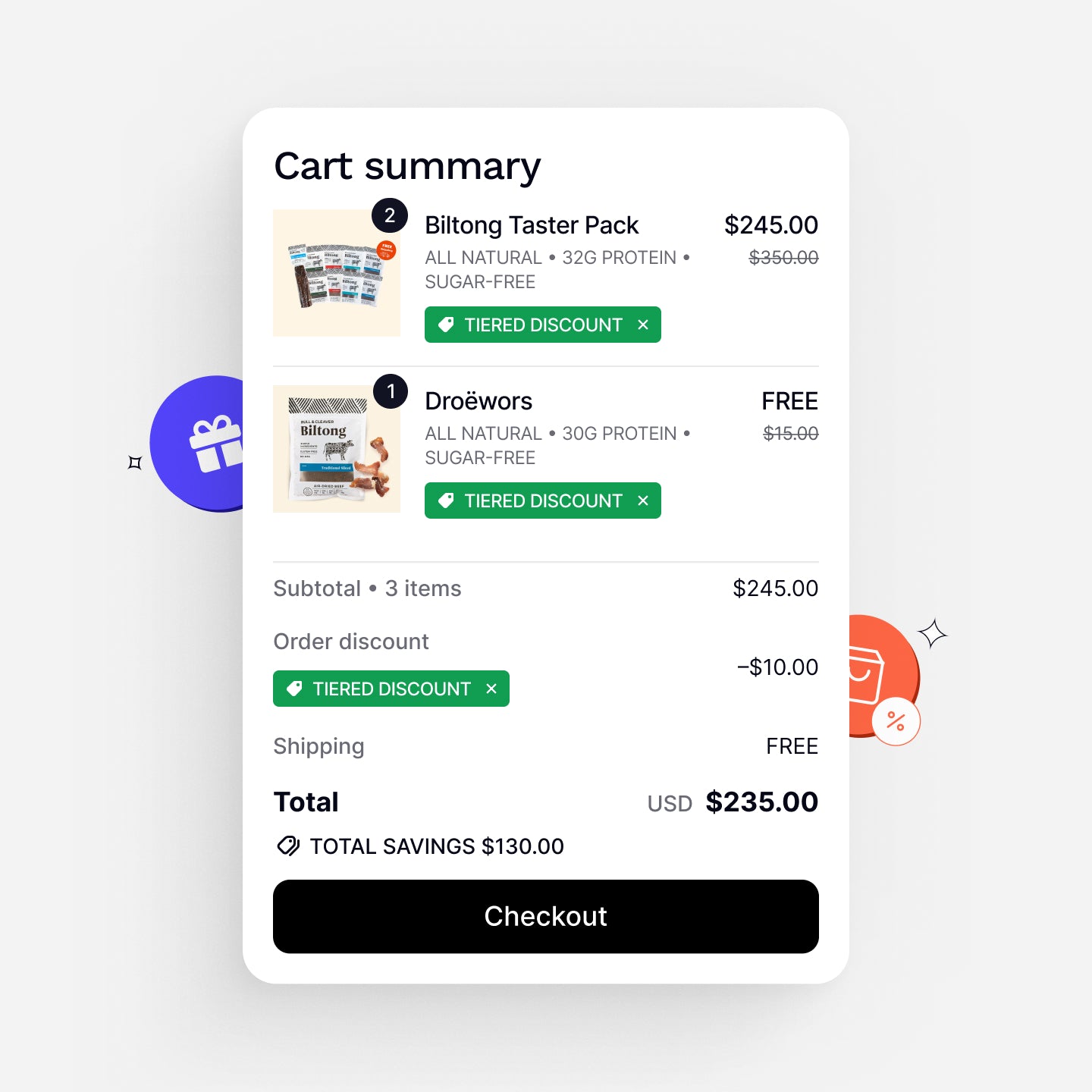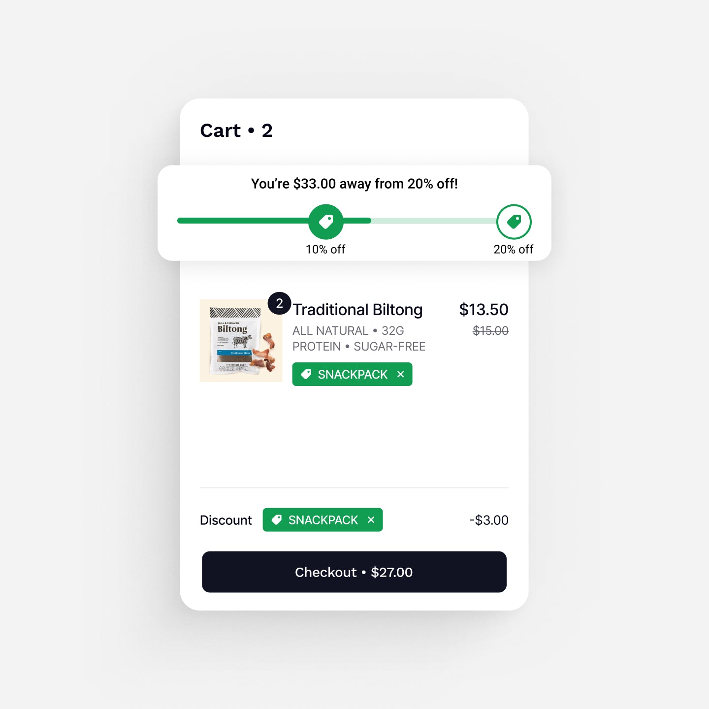 Launch layered, segmented promotions in the cart drawer with clear savings, no coding required.
